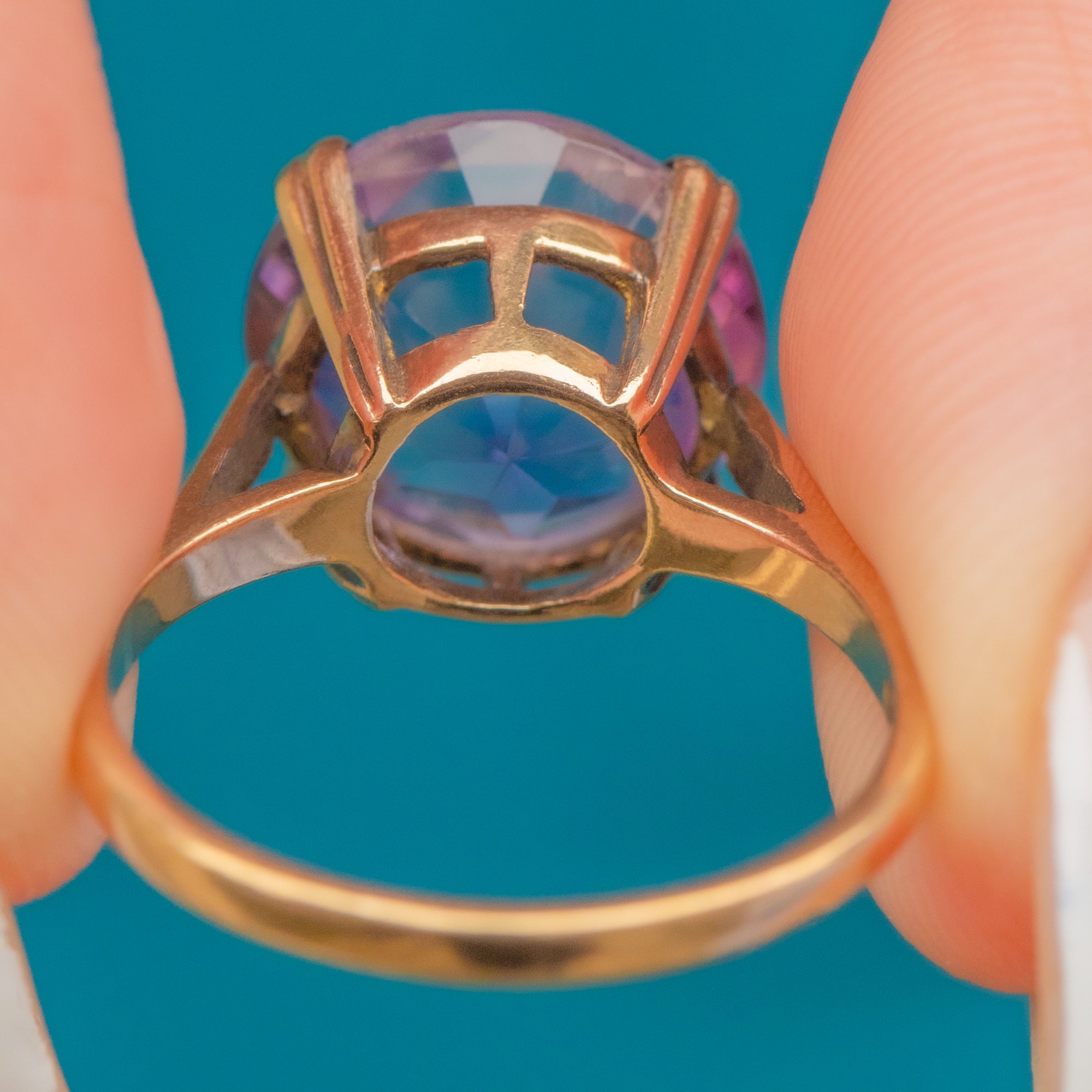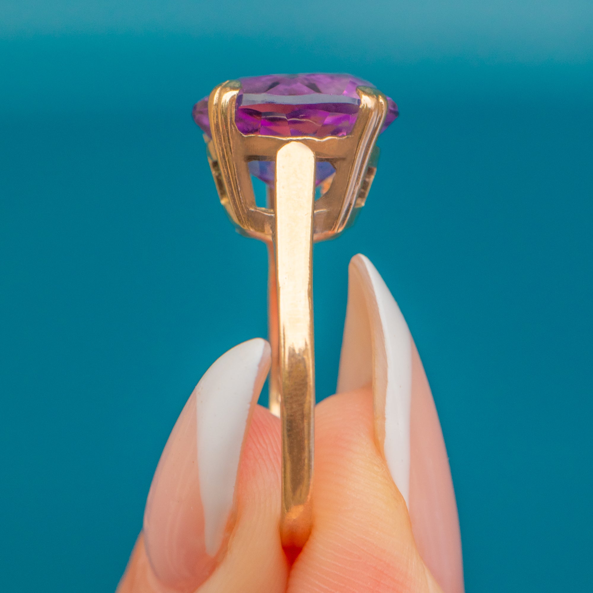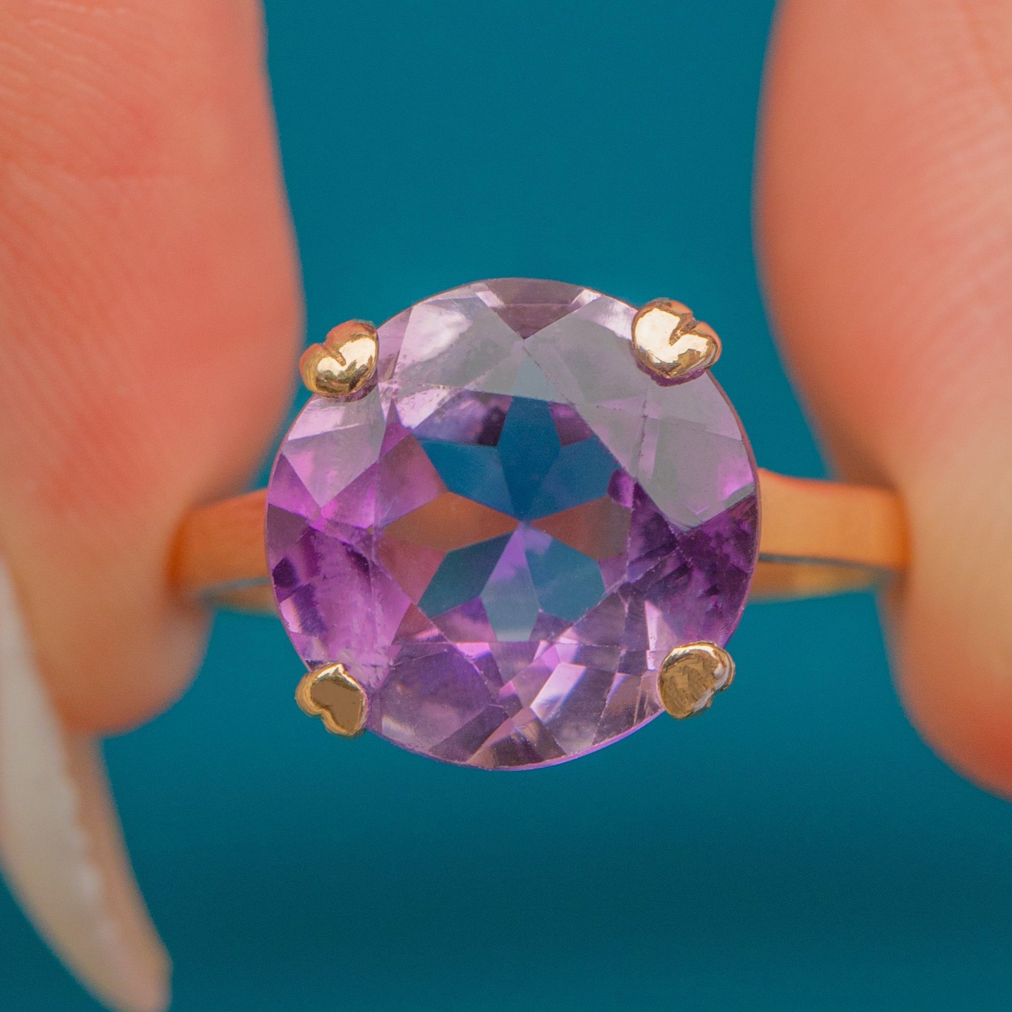 EXCELLENT: The Amethyst is in superb condition with no chips or scratches and retains its strong colour. The Gold band is smooth, with no signs of wear or resizing.
