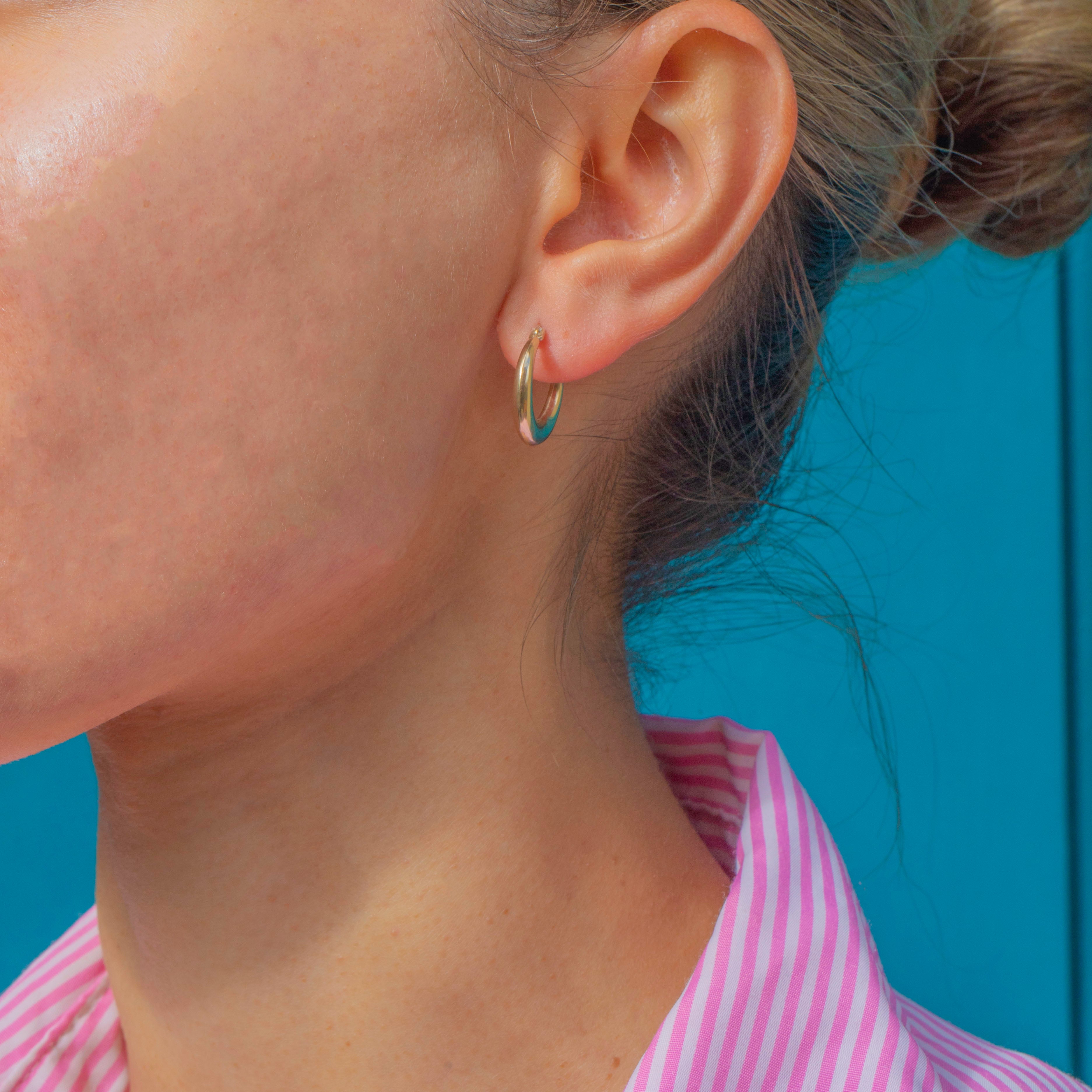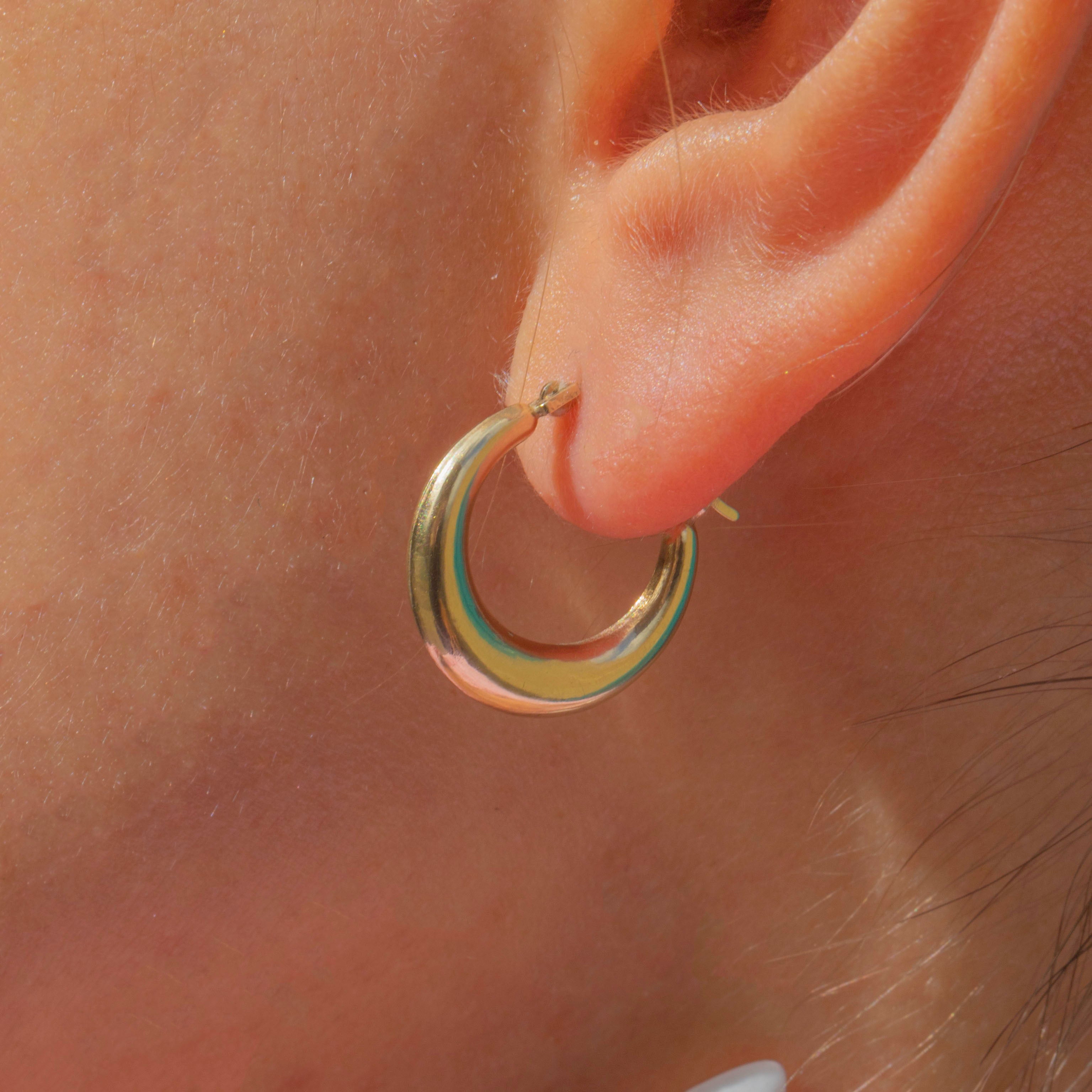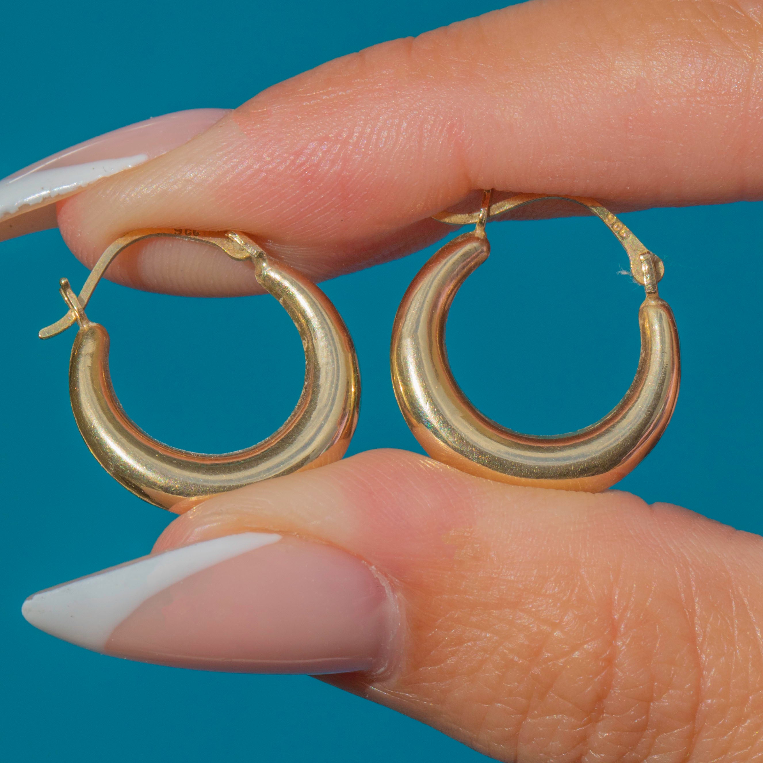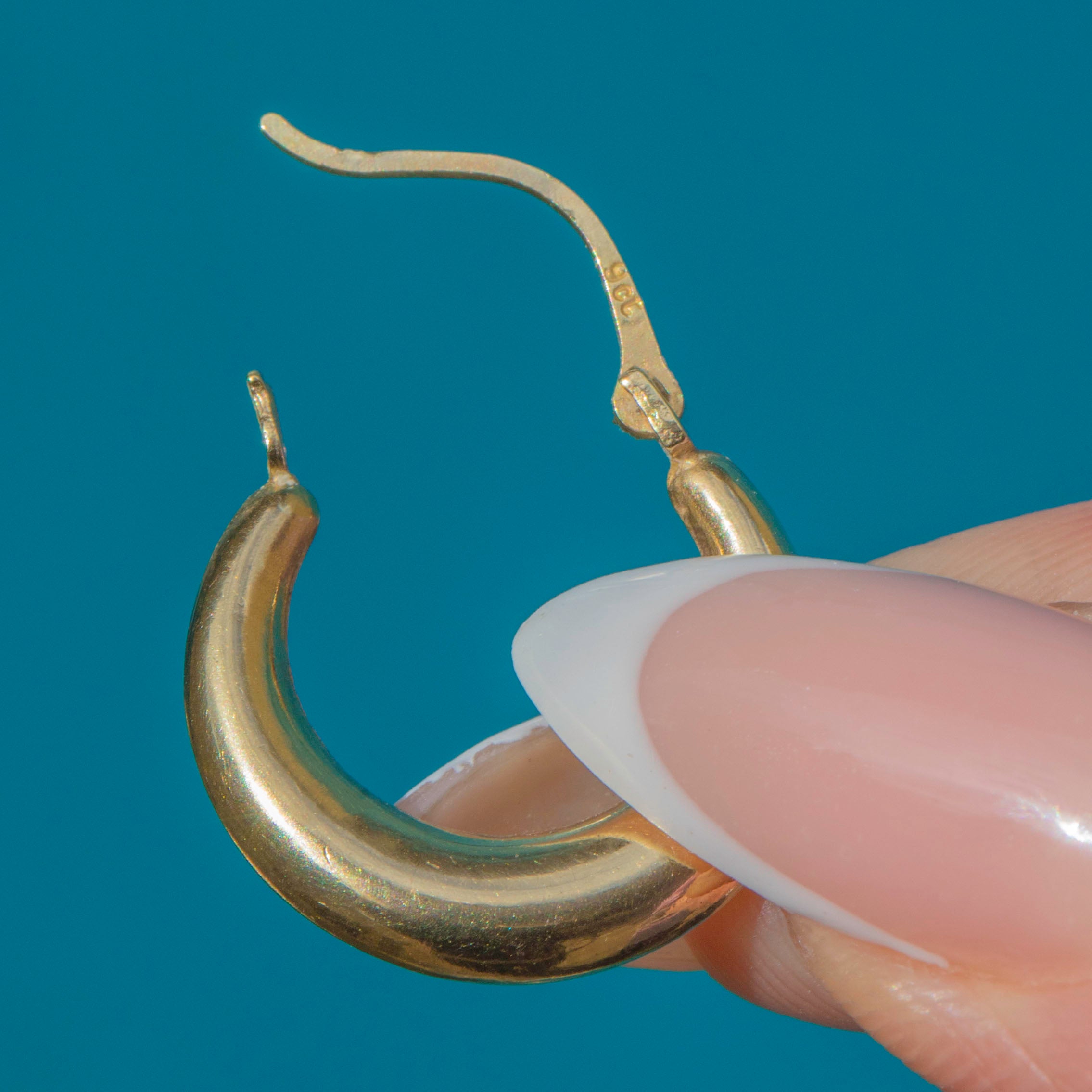 A petite pair of mid-century vintage 9ct Gold hoop earrings. With their elegant rounded shape and polished finish, these lightweight hoops are perfect for everyday wear, adding just the right touch of vintage charm.
