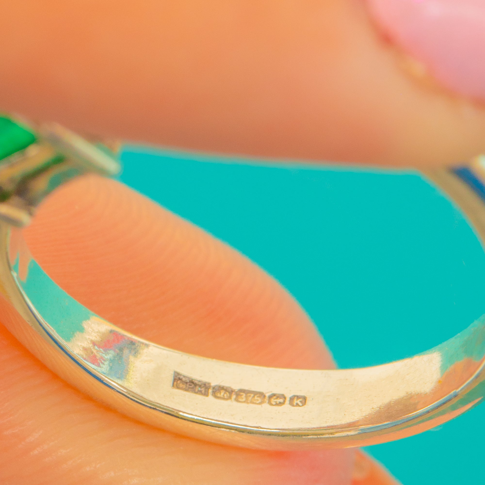 Crafted in 9ct White Gold and fully hallmarked for Birmingham 2009, this Emerald ring is elegant worn alone or as a refined accent in a stack—effortless, modern, and forever chic.