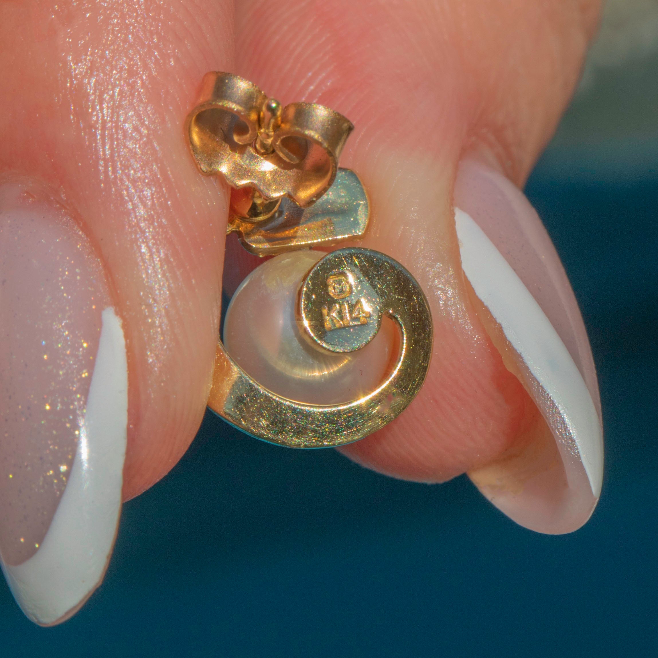 EXCELLENT. These Mikimoto 14ct Gold Pearl stud earrings are in excellent condition. The earrings have secure Pearls, that have retained a gorgeous nacre. The butterfly backs allow you to wear this pair confidently.