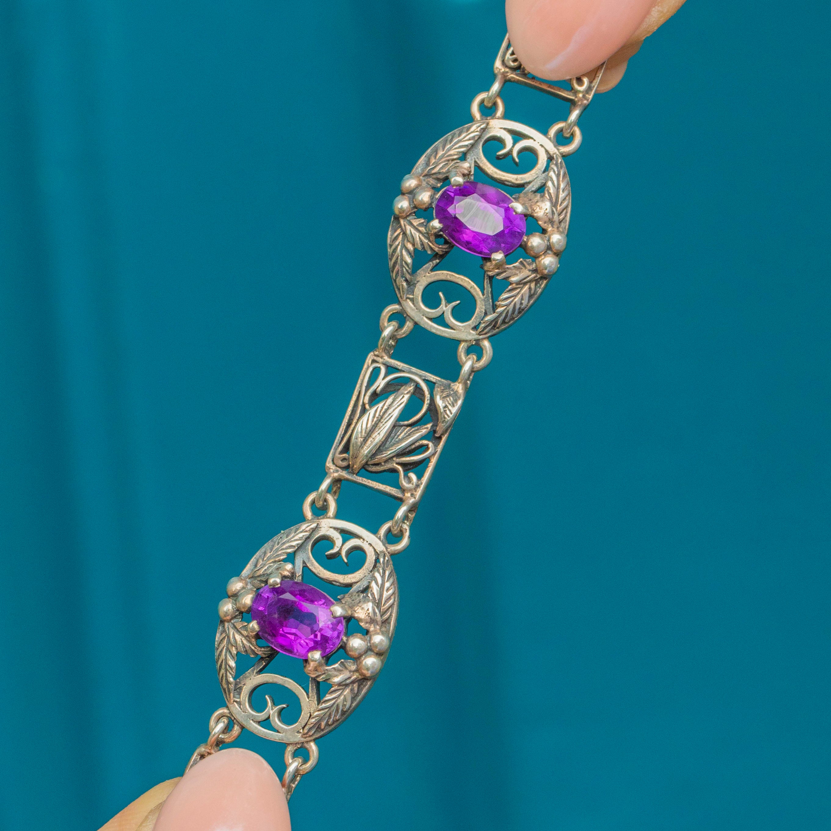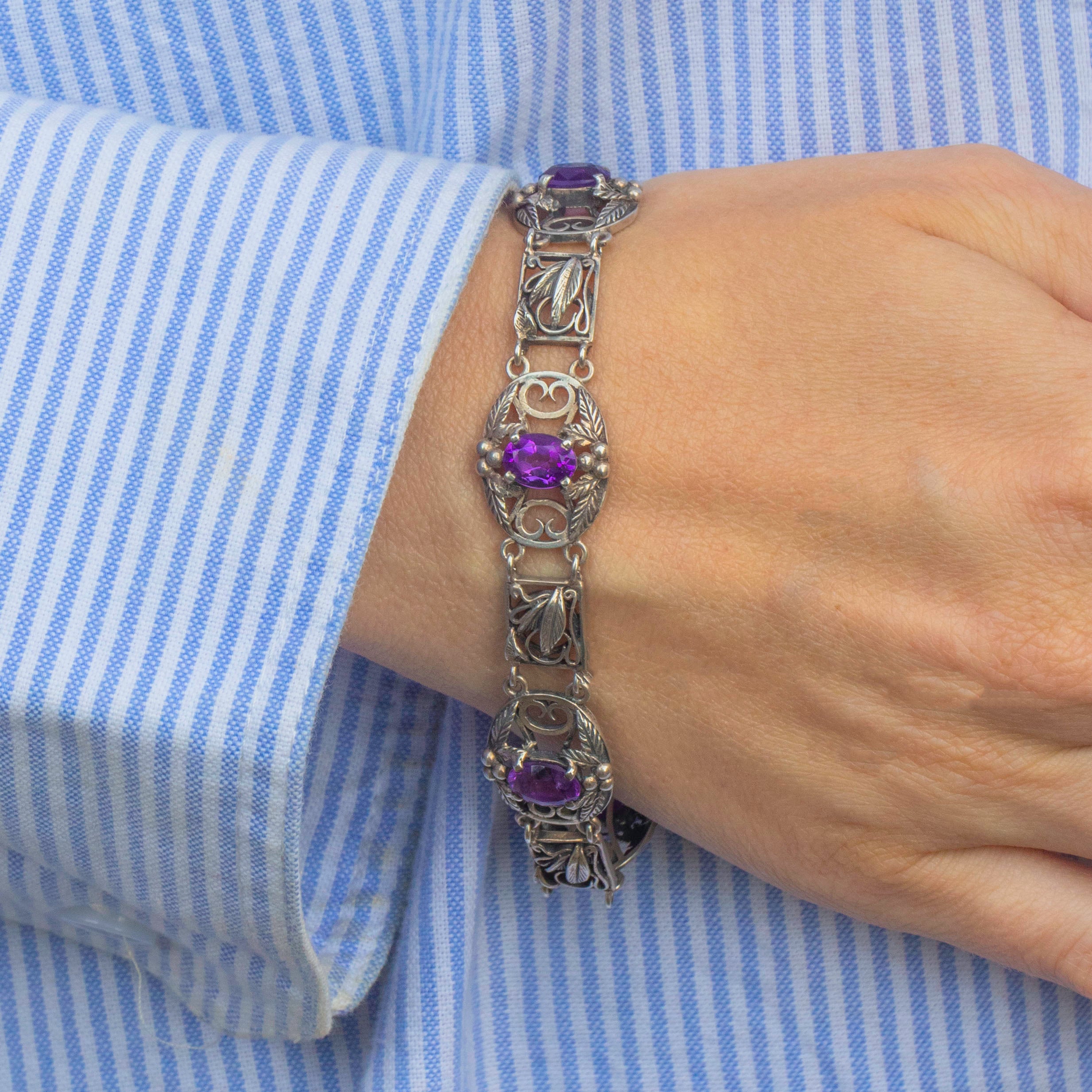 Bracelet en argent ajouré style Bernard Instone avec améthyste, 3.00ct.