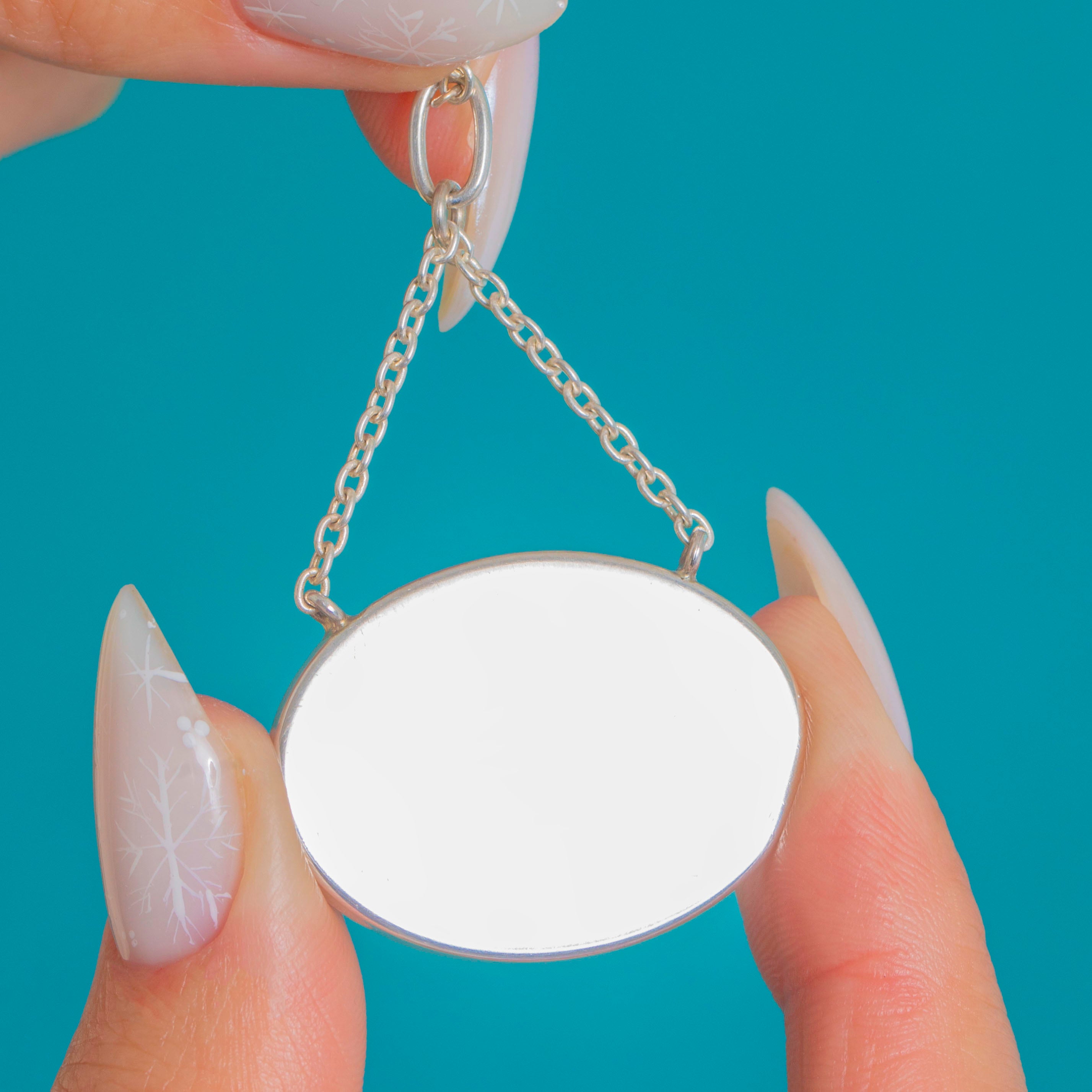 The pendant is suspended via twin short side chains to an elegant elongated connector, joined to a fine cable chain with a classic spring-ring clasp. Crisp imagery, a minimalist frame, and a whimsical, nature-inspired motif make this an easy, eye-catching piece to wear and layer.