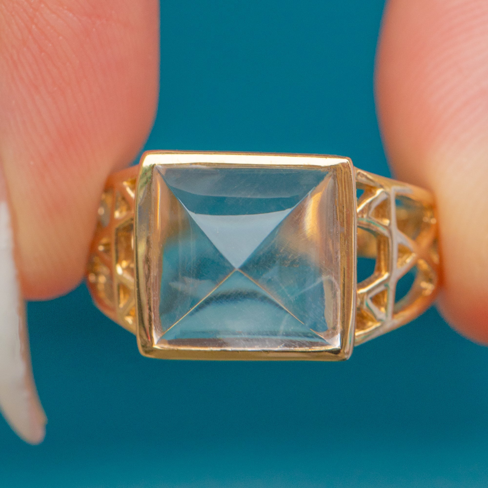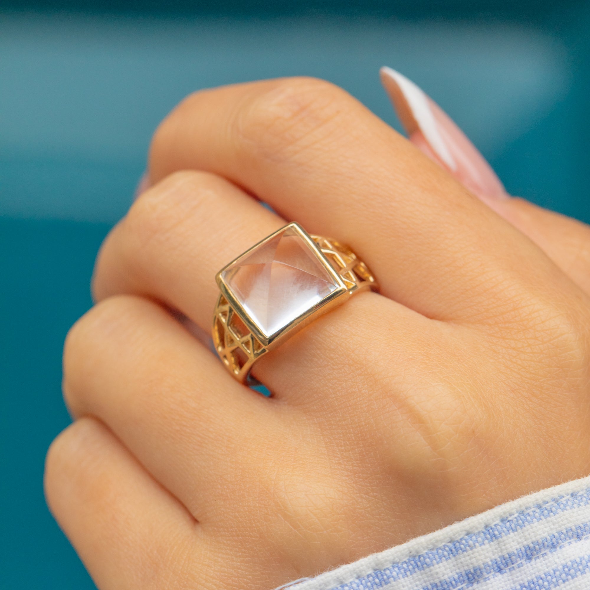 Bague en or 9 carats avec cristal de roche en forme de dôme sugarloaf