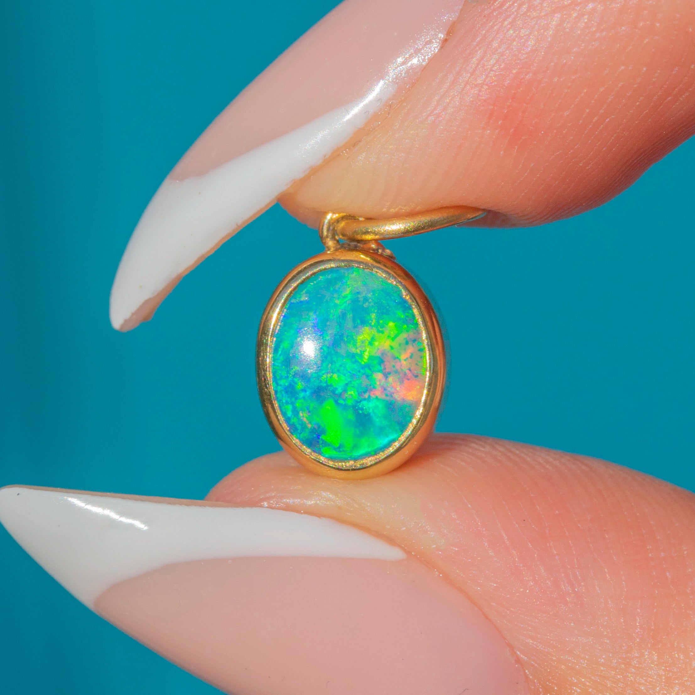Vivid 18ct Gold Bezel Set Opal Charm
