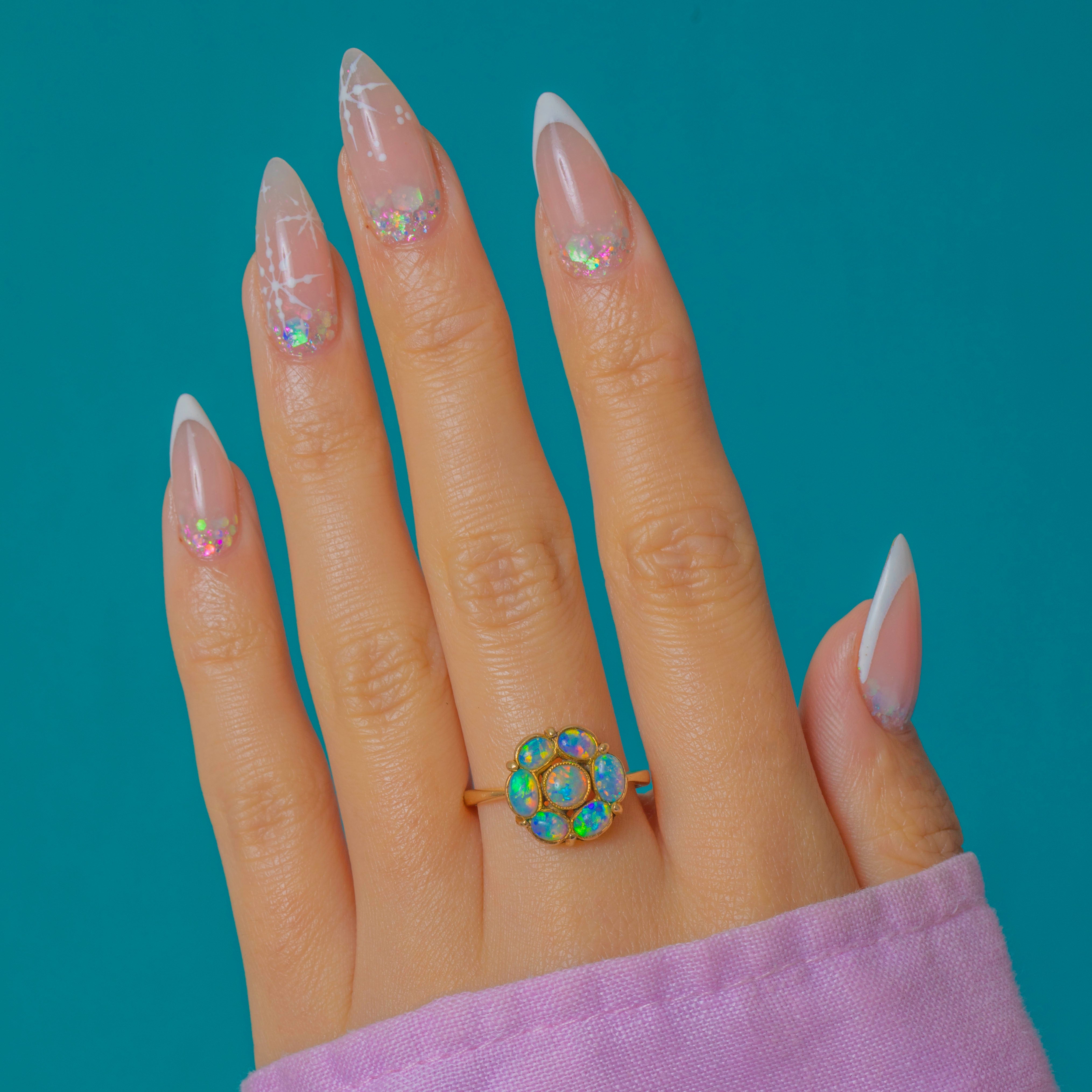 Vivid 9ct Gold Opal Flower Cluster Ring